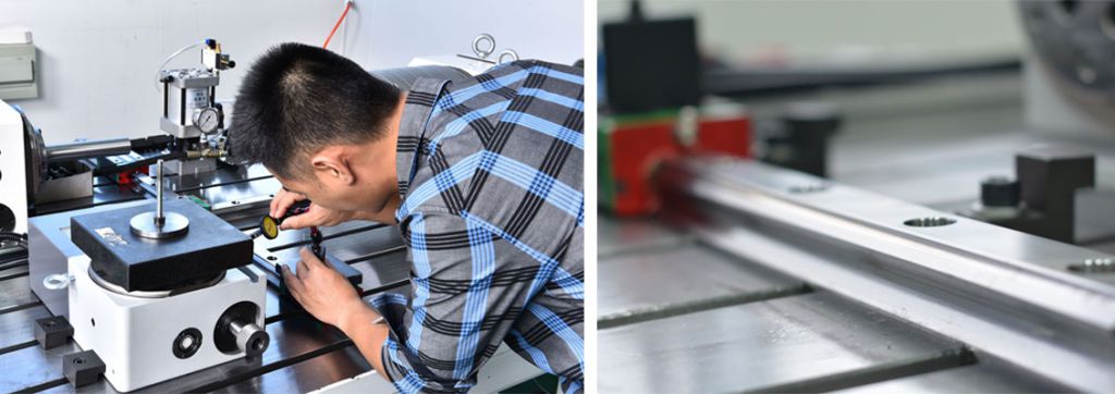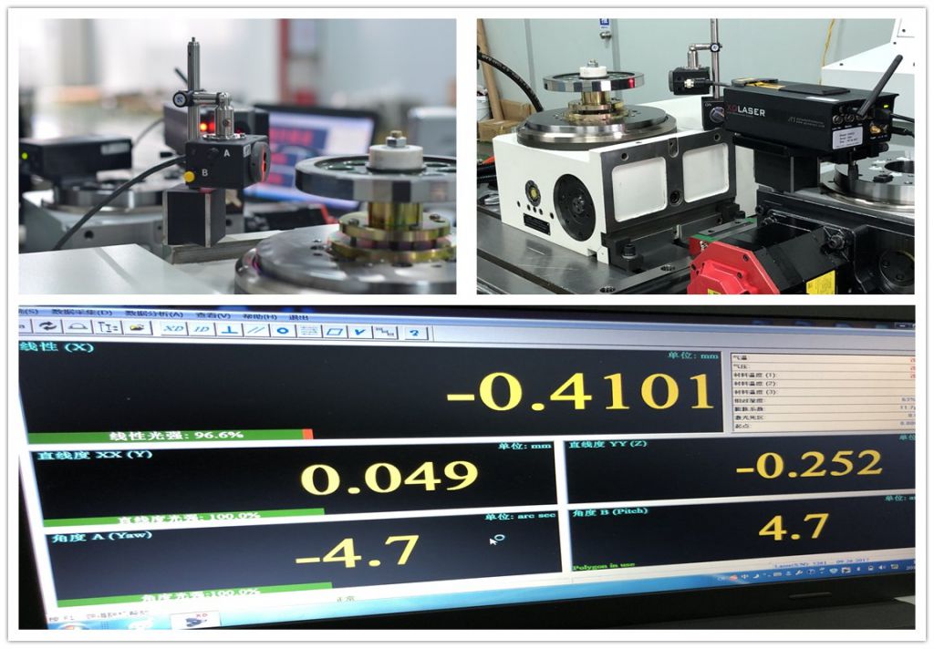 成品質(zhì)量控制(OQC):我們對(duì)成品轉(zhuǎn)臺(tái)實(shí)行全檢,符合國(guó)標(biāo)GB/T 17421.2-2016/ISO230-2:2006 機(jī)床檢驗(yàn)通則(數(shù)控軸線的定位精度和重復(fù)定位精度的確定), 采用最先進(jìn)的CNC機(jī)床模擬測(cè)試儀,可測(cè)試各種操作系統(tǒng)(包括發(fā)那科、西門(mén)子、三菱、海德漢、發(fā)格、兄弟等, 也包括華大、華中、廣數(shù)等國(guó)產(chǎn)系統(tǒng))下沃迪士轉(zhuǎn)臺(tái)的工作狀態(tài)。轉(zhuǎn)臺(tái)精度測(cè)試均采用鐳射等精密儀器。