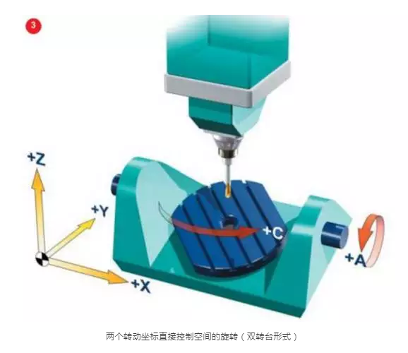 五軸機床的運動是五個坐標(biāo)軸運動的合成。旋轉(zhuǎn)坐標(biāo)的加入,不但加重了插補運算的負(fù)擔(dān),而且旋轉(zhuǎn)坐標(biāo)的微小誤差就會大幅度降低加工精度。因此,要求控制器有更高的運算精度。