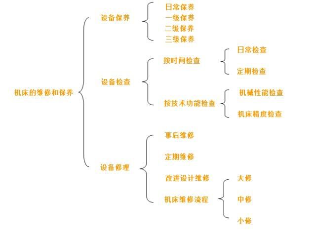 ②中修,是指對設備進行部分解體,修理或更換主要零部件、基準件,檢查整個機械系統(tǒng),緊固所有機體部分,以保證機床能達到和恢復應有的標準和技術要求。